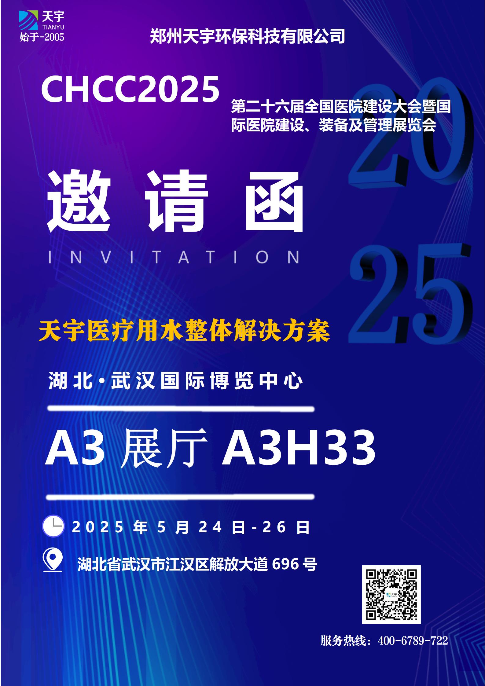 天宇医疗用水欢迎各位朋友、合作伙伴莅临指导! 5月24日武汉,邀您共赴医院建设年度盛会!
