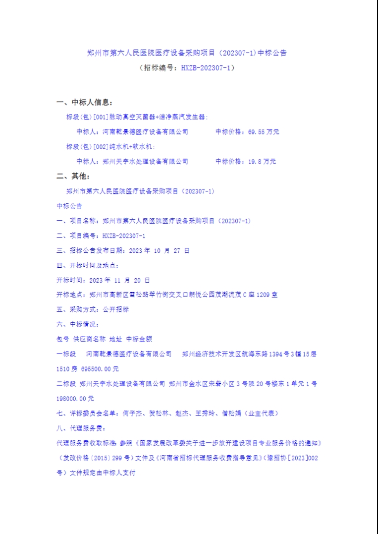 下一篇:河南省人民医院北院区干燥柜、负压清洗消毒器、蒸汽发生器、清洗消毒工作站及水处理系统采购项目